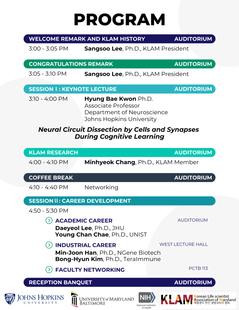 많은 관심 부탁드리고 회원분들의 네트워킹과 지역 한인생명과학 커뮤니티의 발전을 위해 꼭 참여해주시기를 부탁드립니다.