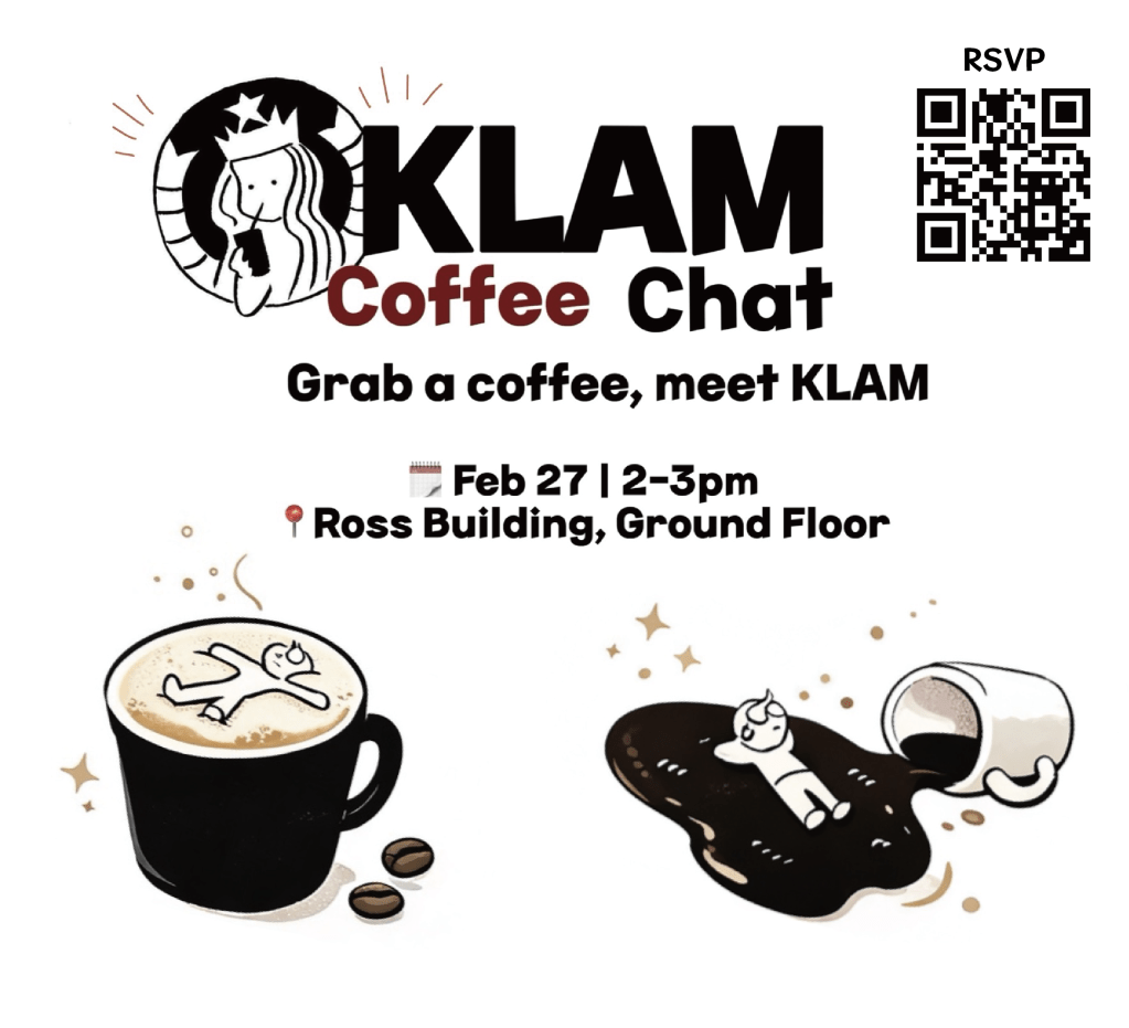 2월 KLAM Coffee Hour 이벤트는 JHMI ROSS Building, Ground Floor에서 진행되며, 커피와 간식이 제공됩니다.